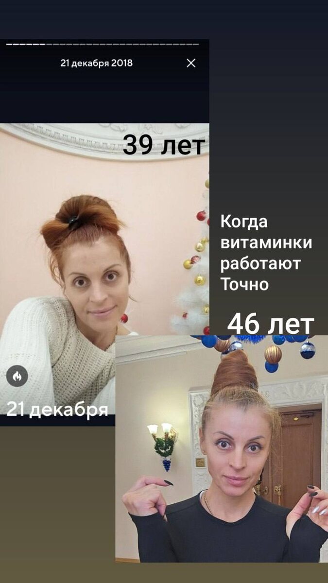 : «Можно ли время повернуть вспять..Да.. Теперь я точно знаю как проверить витамины которые пьешь..сравни свои фото хотя бы двух летней давности и текущее... Почувствовали, увидели мою разницу? А казалось бы там я на 7 лет моложе..глаза заплывшие, цвет кожи мёртвый.. И да..я в 2018 тоже на витаминах была..НО КАК ВИДИМ ЧЁТ ОНИ НЕ РАБОЧИЕ БЫЛИ многие мои клиенты видят на себе результат..энергия появилась, внешние изменения вот и повторные заказы..вот и не нужно 100500 человек в команде, чтобы прийти к доходу в месяц какой я раньше получала в совокупе за 12 мес.»