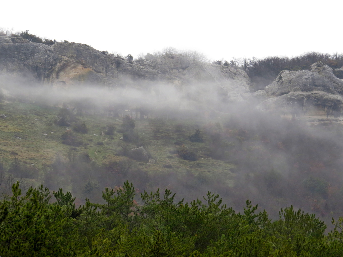 После любования Водопадом Мердвен-Тобе на озере Уппа было решено посетить пещеры, в которых располагается действующий монастырь Челтер-Мармара. От Родного до поворота к монастырю 4 км и мы решили подождать автобус для экономии время и сил. Доехав до поворота, направились вверх по тропе. Монастырь находится в скальных обрывах и подъем по высоте составляет 300-360 метров. Последняя чать тропы слишком уж крутая. Морось ни куда не делась, так периодически смачивала и нас и траву. Что сказать про посещение монастыря? После подъема по почти вертикальным деревянным лестницам, как-то не очень хочется повторять этот подвиг. Погода, к сожалению не способствовала хорошим фотографиям. Многие не удались совсем. Но смысл и общее представление получить можно. Меня больше радовали виды, открывающиеся по мере подъема! Но, о них в следующий раз. Походив по галереям между пещер, по очередной лестнице мы выбрались на верх горы, где нас и накрыла беспросветная туча с очередной моросью, лишив прекрасных гор