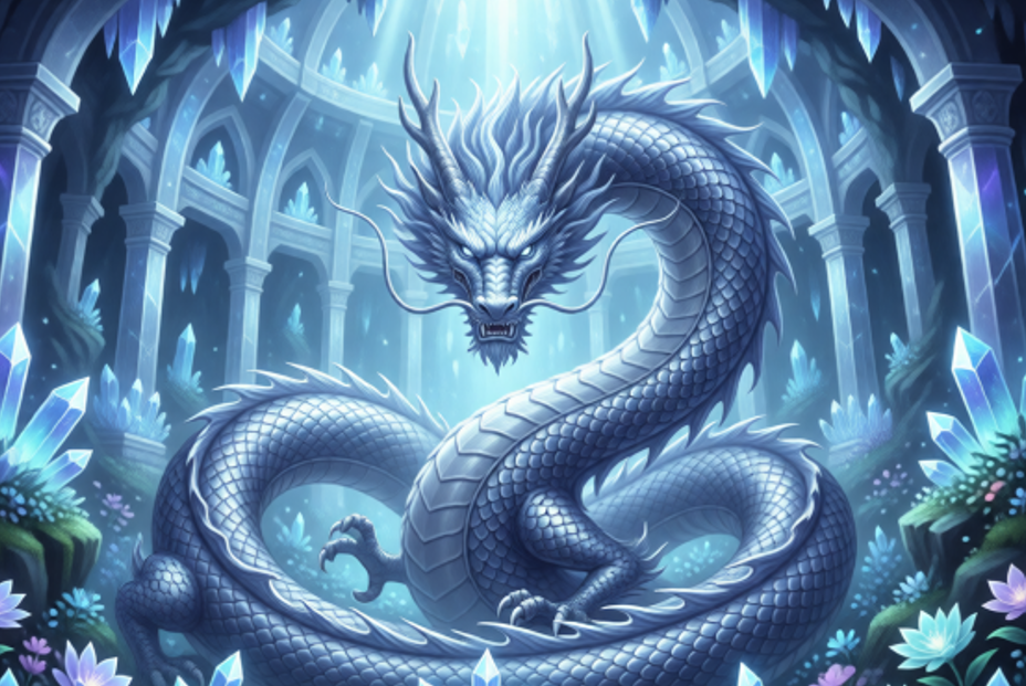 Его дыхание рождало ветра в ущельях, биение его сердца отмеряло ритм времён года, а одна слеза могла наполнить озеро. Лун-Шен даровал людям пещеру — не тёмную и сырую, а сияющий Хрустальный Дворец.