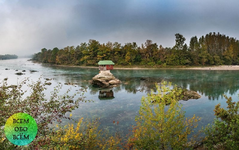Один из самых необычных домов Сербии «парит» на крошечной скале прямо посреди реки Дрина