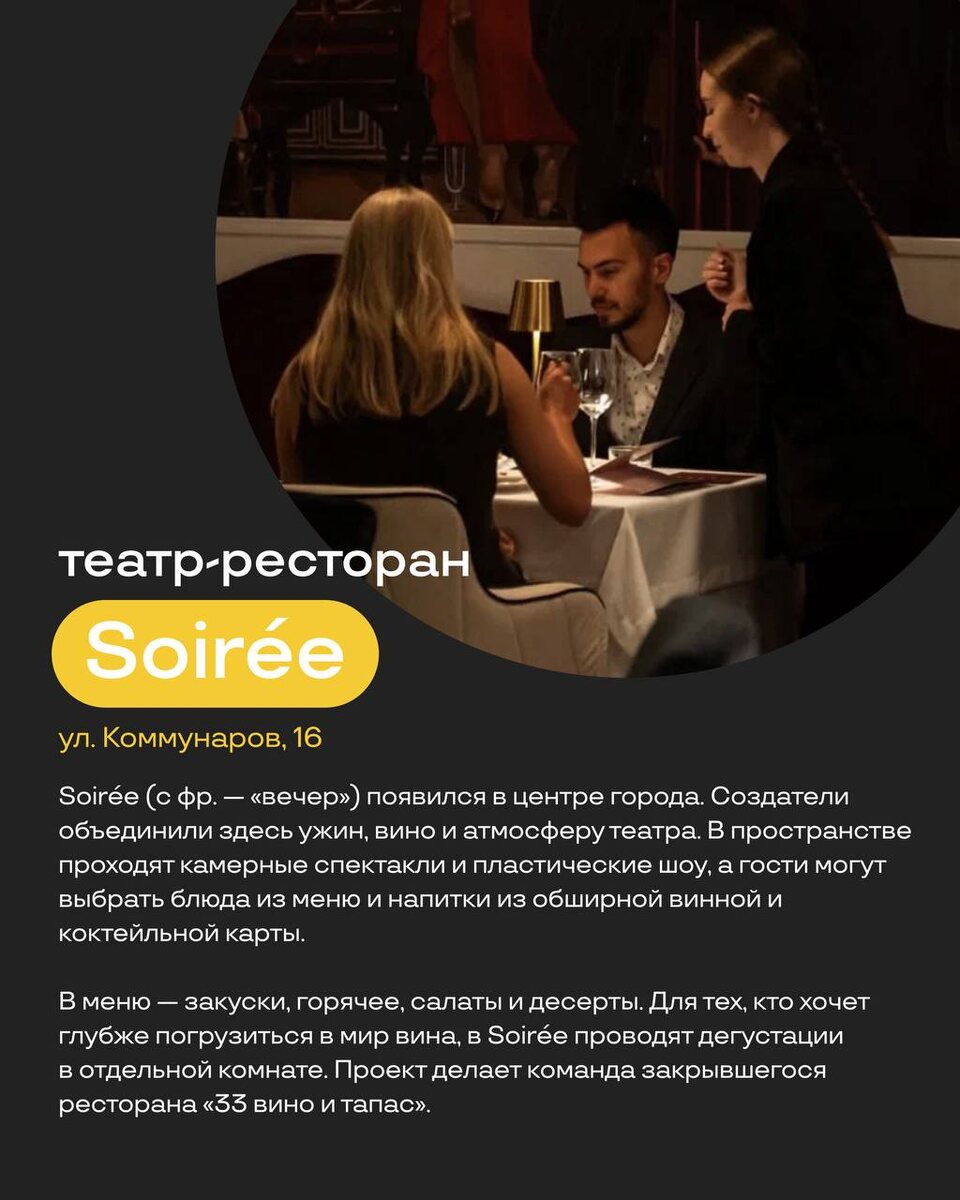 вы могли пропустить 🌟 Листайте карточки и узнавайте, в каком ресторане есть меню спектаклей, где попробовать раклет или стейк за 300 рублей и как ощутить японскую философию ваби-саби. А в комментариях рассказывайте, где уже успели побывать 👀 #обзоры_иркэдишен