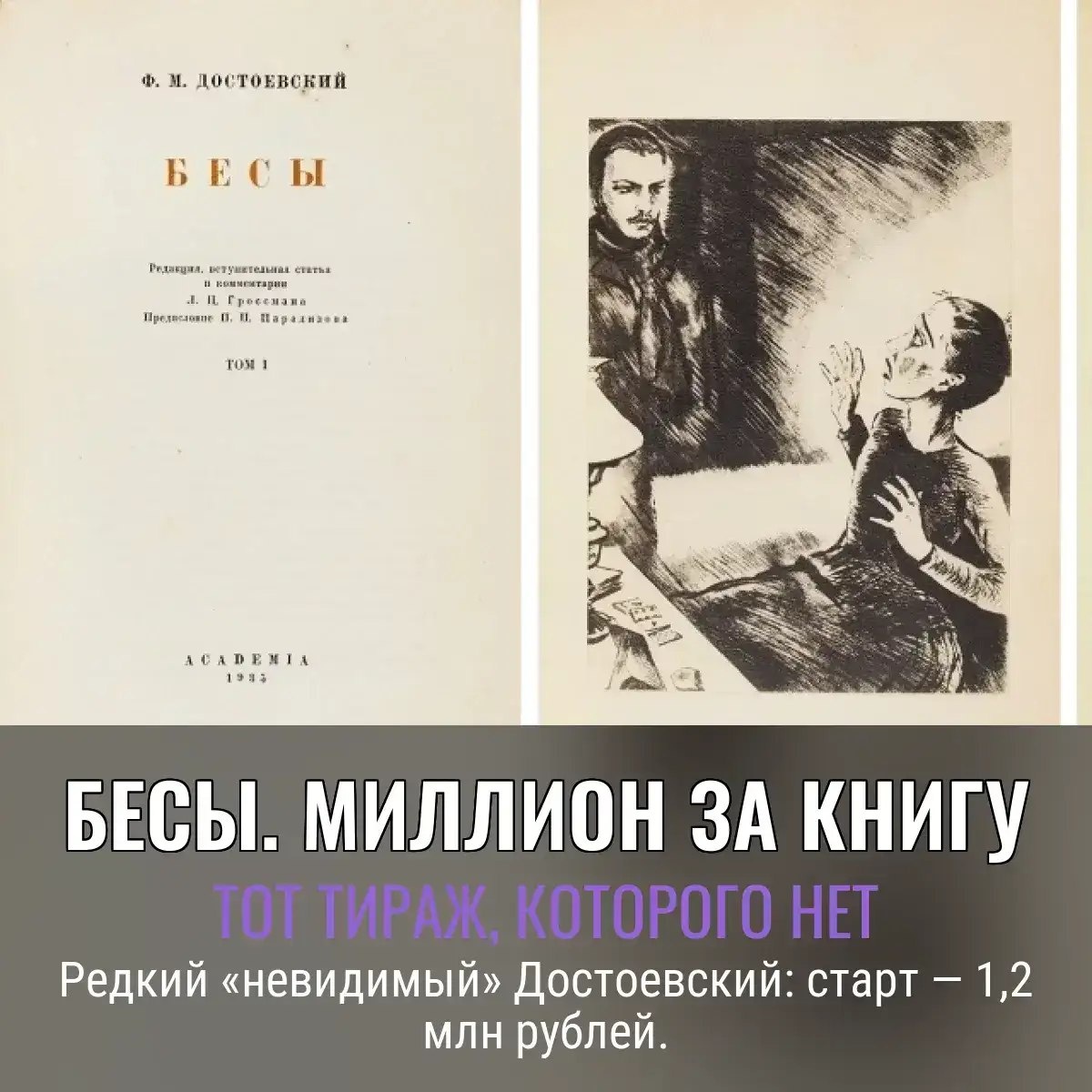 🤑. На аукционе всплывет экземпляр печально уничтоженного издания «Бесов» 1935 года — той самой книги, которой официально «не существует». Тираж зарубили по навету в «Правде», назвать роман "контрреволюционным" оказалось проще, чем почитать классику. Лот для отчаянных коллекционеров: таких осталось в природе всего около десяти штук — редкие, как совесть у цензоров. Другие лоты — сборник стихов ручной работы, автографы, старые фото и бумажки из истории, но, как обычно, все в тени призрачного Достоевского., Следите за новостями 📩