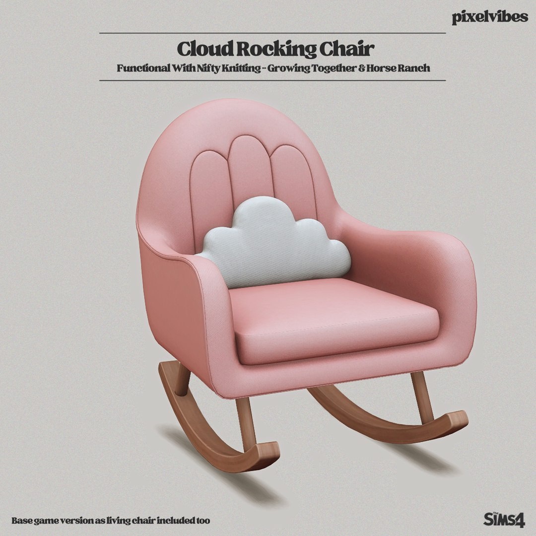 Кресло-качалка "Cloud Rocking Chair" от Pixel Vibes станет уютным акцентом в любом уголке вашего виртуального дома, добавляя интерьеру атмосферу невесомого комфорта. Этот мод для The Sims 4 идеально подходит для создания мечтательных и расслабляющих пространств. Скачать: https://simsfans.ru/29155 #Sims4@simsfans_ru #Sims4Fashion #симс4будущее
