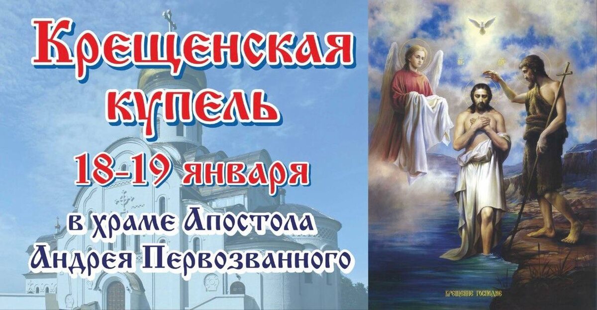 (иордань). Крещенская купель будет открыта для погружения 18 и 19 января с 12:00 до 20:00 часов. В храме будут оборудованы мужские и женские теплые раздевалки. В трапезной храма будет организована благотворительная ярмарка. Важно: Купание в крещенской купели — это народная традиция, а не обязательное предписание Церкви. Грехи смываются не водой, а истинным покаянием в Таинствах Крещения и Исповеди. Символическое окунание в «иордани» после богослужения для христианина служит большим приобщением к реальности праздника Крещения — Богоявления Господня. Священники призывают не придавать ему суеверного значения и соблюдать осторожность, так как это может быть небезопасно для здоровья. Просим вас соблюдать правила безопасности и учитывать состояние своего здоровья, не подвергая себя риску. Категорически не рекомендуется купаться при сердечно-сосудистых, легочных, гинекологических заболеваниях, диабете, гипертонии.