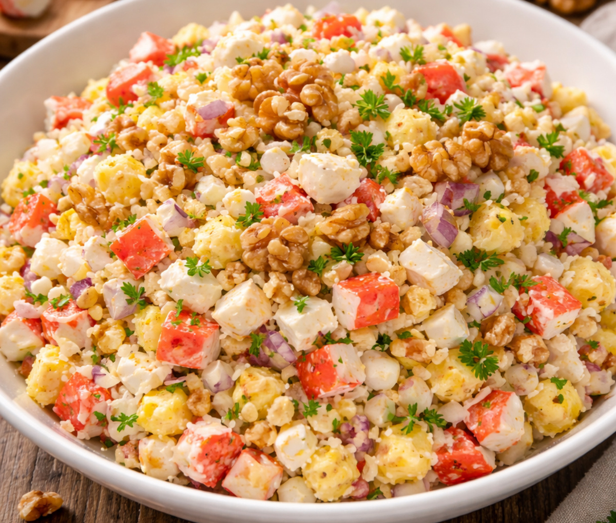 Честно признаюсь: я уже давно не верила, что из крабовых палочек можно приготовить что-то новое. Все варианты, кажется, перепробованы — с рисом, с огурцом, с кукурузой, с яйцом в разных пропорциях. Меняется подача, но вкус остаётся знакомым до последней ноты.