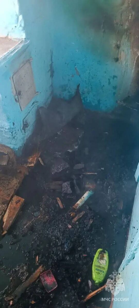 Вчера в поселке Безречная Оловяннинского округа из печи выпали горящие угли, и доски вспыхнули. Пожарные потушили огонь на площади всего 2 м². Тело хозяйки нашли соседи. По информации краевого управления МЧС, еще в 2020 году в квартире установили пожарный извещатель, но прибор не сработал, потому что в нем не было батарейки. Фото: МЧС Забайкалья 🟦 Новости Забайкалья