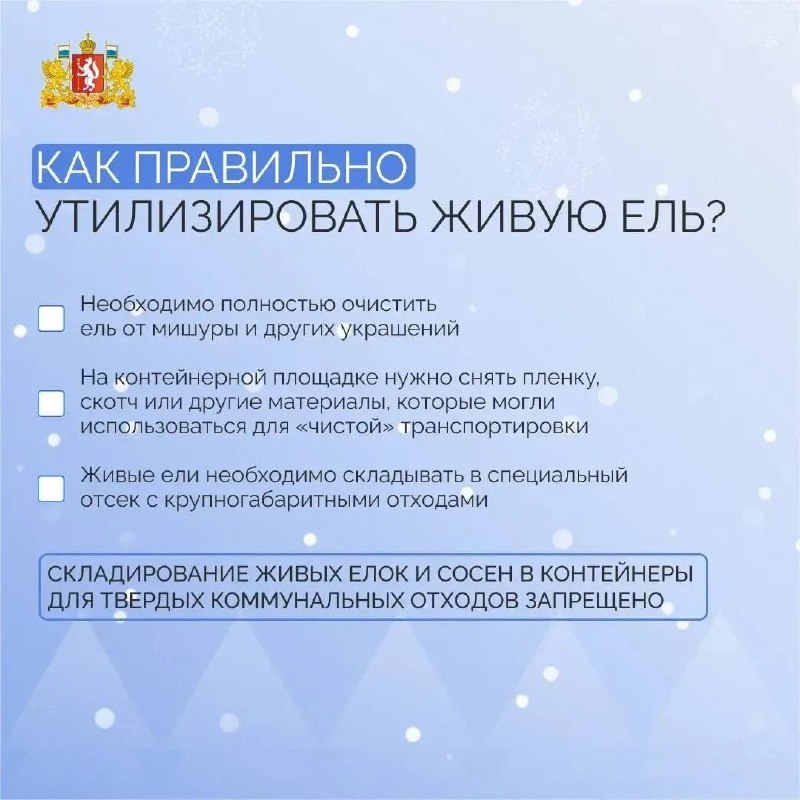 А сейчас – после завершения праздников важно правильно утилизировать хвойные деревья. В карточках – основные правила, пожалуйста, не пренебрегайте ими! Помните также, что ещё один экологичный вариант попрощаться с новогодней елью – передача на фермы, в приюты для животных или зоопарки. Там деревья могут использоваться в качестве корма или материала для обустройства вольеров. 📍Правильная переработка и дальнейшее использование твердых коммунальных отходов соответствует целям и задачам нацпроекта «Экологическое благополучие».