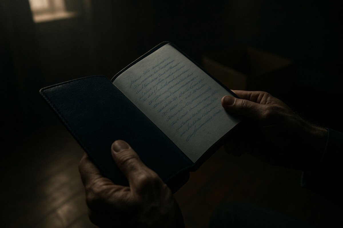 Снизу, под стопкой фотографий, лежала тетрадь в тёмно-синем кожаном переплёте. Я никогда её не видел. Пальцы, коснувшись гладкой поверхности, оставили чёткие отпечатки. Я открыл её. Узнал почерк сразу — эти быстрые, с лёгким наклоном вправо буквы, которые я когда-то считал олицетворением её живости. Это был дневник. Не ежедневные записи, а отрывочные заметки, мысли. Я начал листать с конца, машинально. И замер.