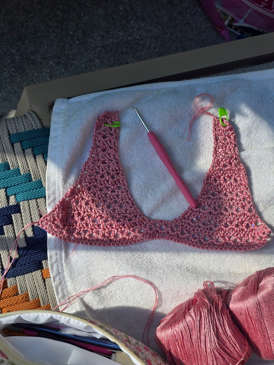 Что у нас не получится сделать примерки и я свяжу либо очень большую или очень маленькую вещь, поэтому вяжу по её одежде и надеюсь на лучшее.