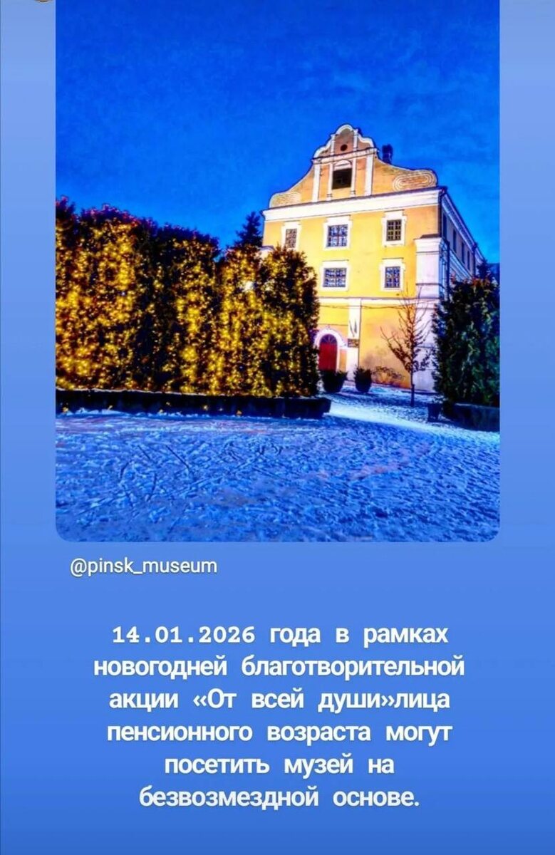 Такое сообщение появилось в официальном телеграм-канале отдела культуры Пинского горисполкома. @Пинский Вестник 📱Ютуб 📱ВК 📱ИНСТАГРАМ 📱ОК 📱ФЕЙСБУК 📱ТИК ТОК Прислать новость