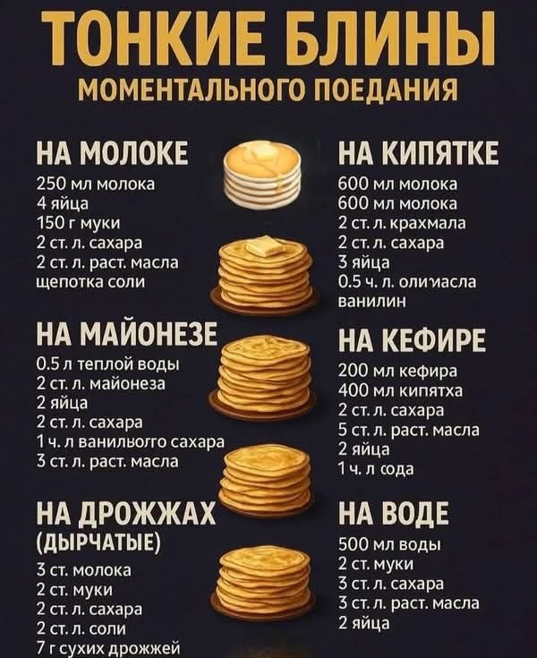 Готовьте, экспериментируйте и наслаждайтесь! 🥞❤️ Какой рецепт из этих вы уже пробовали, а какой приготовите первым? Пишите в комментариях!