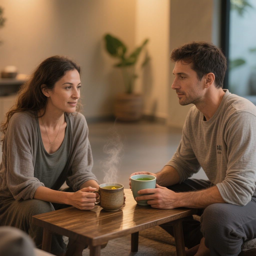 Глава 4. Свободное падение Следующие несколько недель превратились в странный, неоговоренный ритуал. После занятия по средам она не спешила уходить. Он не приглашал её явно, но всегда ставил на низкий столик в приёмной две кружки — одну с зелёным чаем для себя, другую, как выяснилось, с ромашковым отваром для неё. Он как-то заметил, что она избегает кофеина по вечерам. Заметил и запомнил. Они говорили. Сначала — о йоге. О зажатости пояснично-подвздошной мышцы у офисных работников и о том, как дыхание удиятхи может успокоить ум. Потом — о книгах. Она осторожно упомянула, что любит перечитывать «Унесённых ветром» не из-за романтики, а из-за Скарлетт, которая выживала любой ценой. Он сказал, что понимает, и рассказал, как в юности зачитывался Стругацкими, потому что их герои всегда искали выход из тупиков, даже космических. Разговор тек легко, как вода, огибая острые подводные камни. Никто не спрашивал: «А что с тобой случилось?» Никто не говорил: «Я понимаю тебя». Было просто присутствие