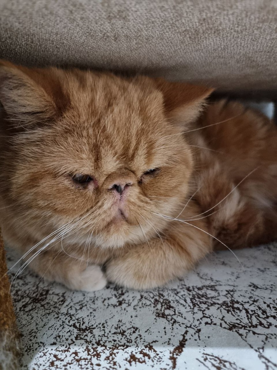 Я о них узнала от хорошо знакомой мне девушки. Они у нас получаются нижегородские хвосты (Дзержинск). Хозяйка умерла, смерть нелепая — дома несчастный случай (упала и ударилась головой об батарею). Кошки пробыли с трупом хозяйки несколько дней, до момента, пока соседи не забеспокоились (круглосуточно свет). Вызвали полицию, вскрыли квартиру, обнаружили хозяйку мёртвой. Квартиру опечатали вместе с кошками внутри. Я всё ждала, что кто-то откликнется, но забирать кошек никто не спешил, ждали родственника из Краснодара. Но когда он прибудет? Прибудет ли вообще? Поговорили с Татьяной, нашли участкового, и кошек нам отдали. Кстати, потом этот родственник (со слов знакомой) сказал по телефону, что ну и славно, что их забрали, мол, если бы они дожили там до его приезда, то всё равно он бы вышвырнул их на улицу (дословно, как мне сказали, так и пишу). Кот-британец или шотландец (смесь), имя Смоки, и кошка-экзот, зовут Дося. Мы нашли страницу в соцсетях хозяйки, видно, что хозяйка их очень любил