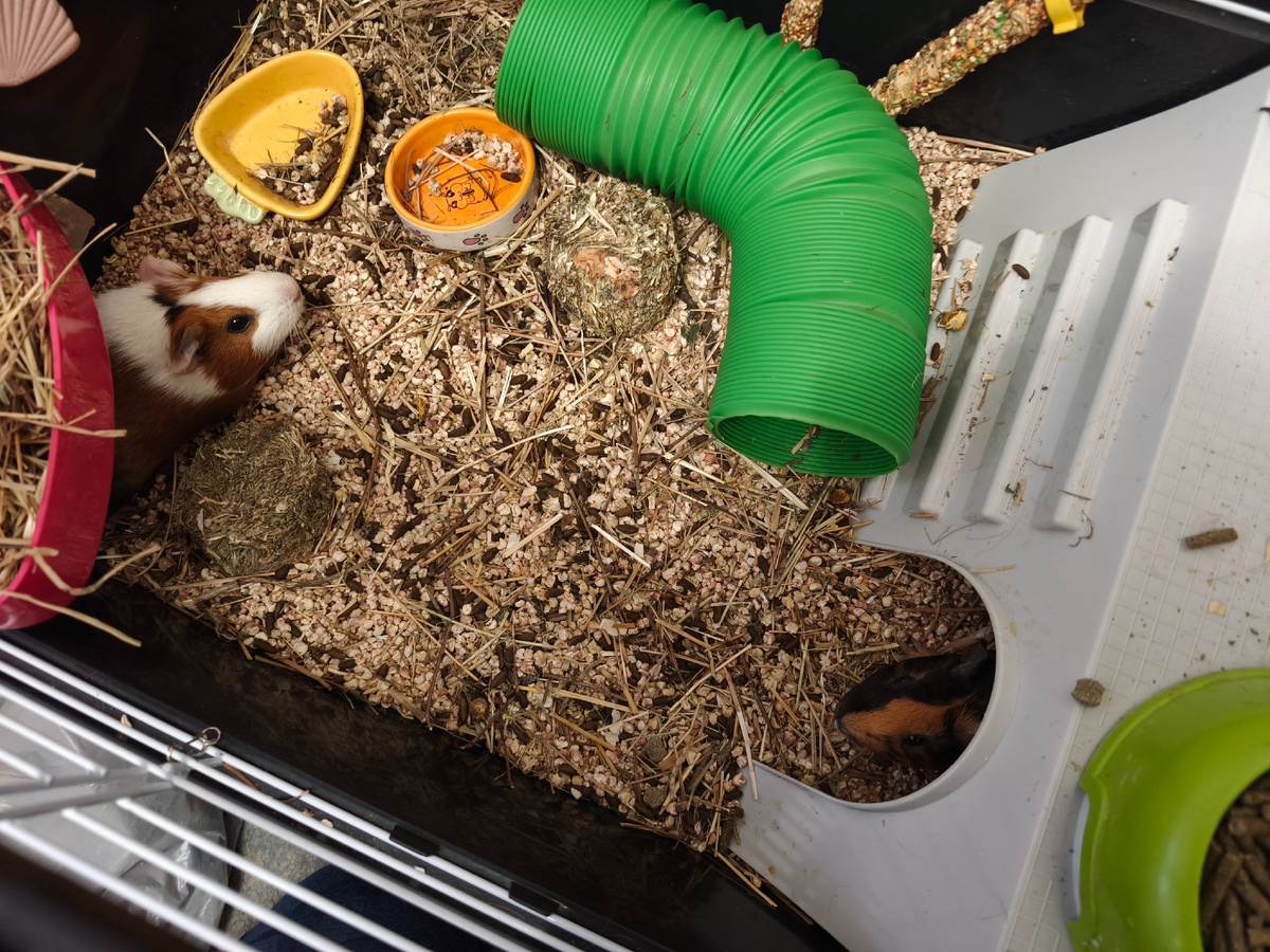 Уже как пол года у нас живут морские свинки. Сначала мы завели одну и были с ней счастливы. Но когда мы с ней не общались, она сидела в уголочке и грустила (так нам казалось). В интернете везде написано что свинки это социальные животные и им нужна пара. И вот спустя два месяца мы заводим вторую свинку. Ну жалко же! Так ли нужна была первой компания? Не верьте, что свинкам так уж нужна пара. Точнее, если вам очень хочется - сразу заводите двоих из одного зоомагазина и заводчика, так будете уверены, что они хотя бы принимают друг друга. Но, если вы не планируете размножение как доход, то одной свинки более чем достаточно! Я искреннее жалею, что мы завели вторую. Наши свинки сначала вообще не приняли друг друга. Первая постоянно нападала на более маленькую и постоянно описывала ее. Ей явно не нужна такая компания. Вот так реально выглядит клетка двух морских свинок спустя 2 дня уборки. Одна сидит в одном углу, вторая только высовывает нос. И посмотрите на количество мусора. С одной с