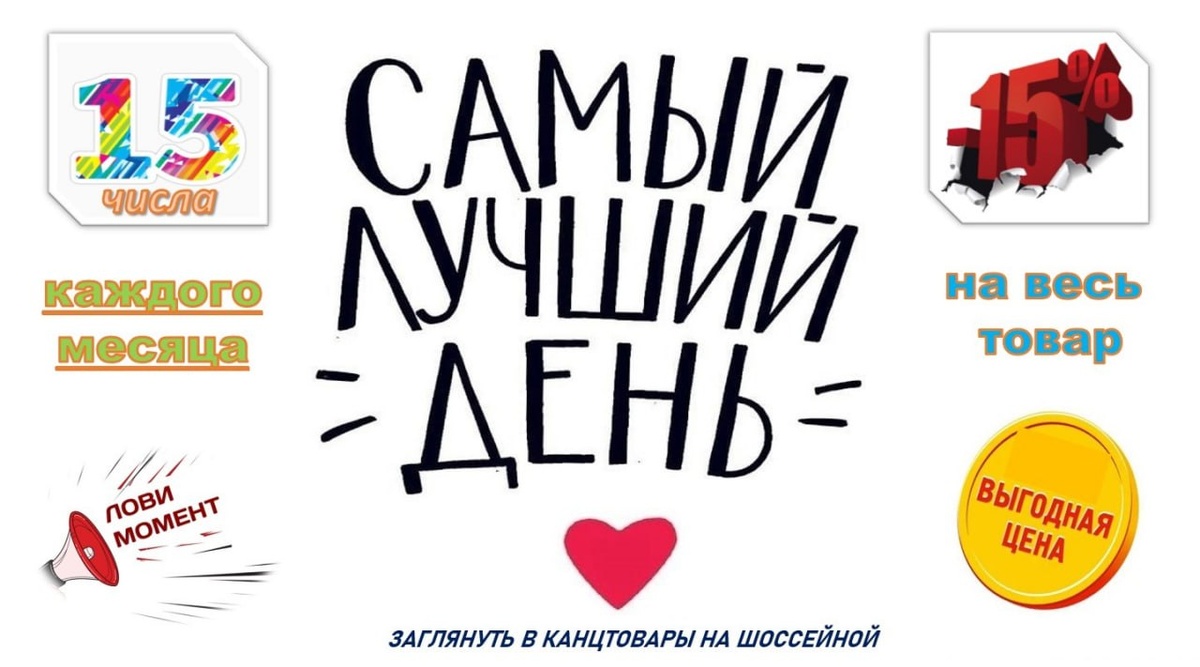 🎉 Хорошее предложение становится лучше! ✅ Мы приняли решение продлить нашу популярную акцию на целый 2026 год: скидка −15% доступна каждому покупателю КАЖДОЕ 15-е число месяца! Покупайте любимые канцтовары экономично и удобно — пользуйтесь нашей акцией регулярно! ⭐️ Ваш любимый магазин канцелярии ⭐️ ПРИСОЕДИНЯЙТЕСЬ: https://t.me/kanztovari_na_shosseinoi ВК: https://vk.com/club220080685 #канцелярия #продлениедействияакций #экономия #канцтовары #полезныепредложения