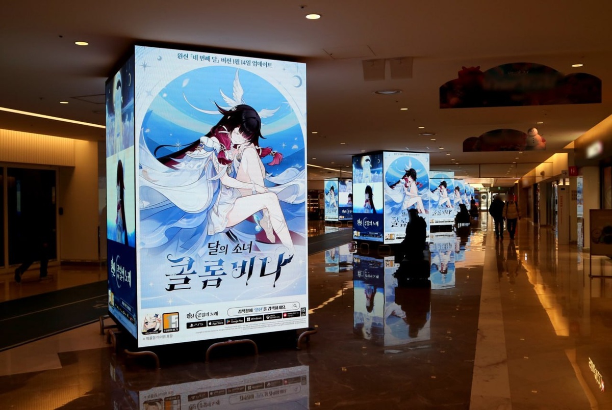 К выходу обновы и релизу Коломбины в сеульском метро, по дороге к Геншин кафе, сделали тематическое оформление. Выглядит масштабно
