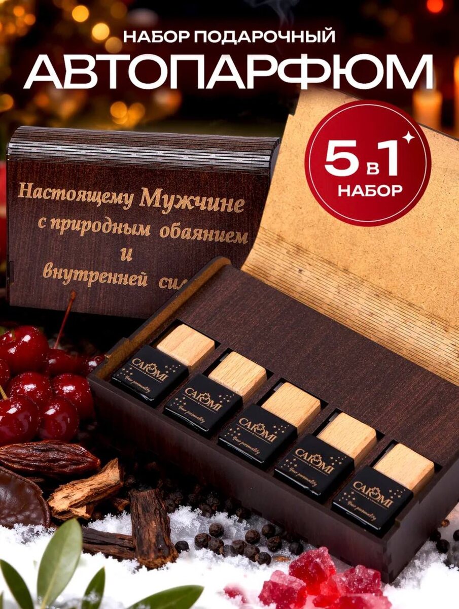 Подарочный набор Caromi 5 в 1 – это воплощение роскоши и элегантности, предназначенное для тех, кто ценит изысканные ароматы даже за рулем