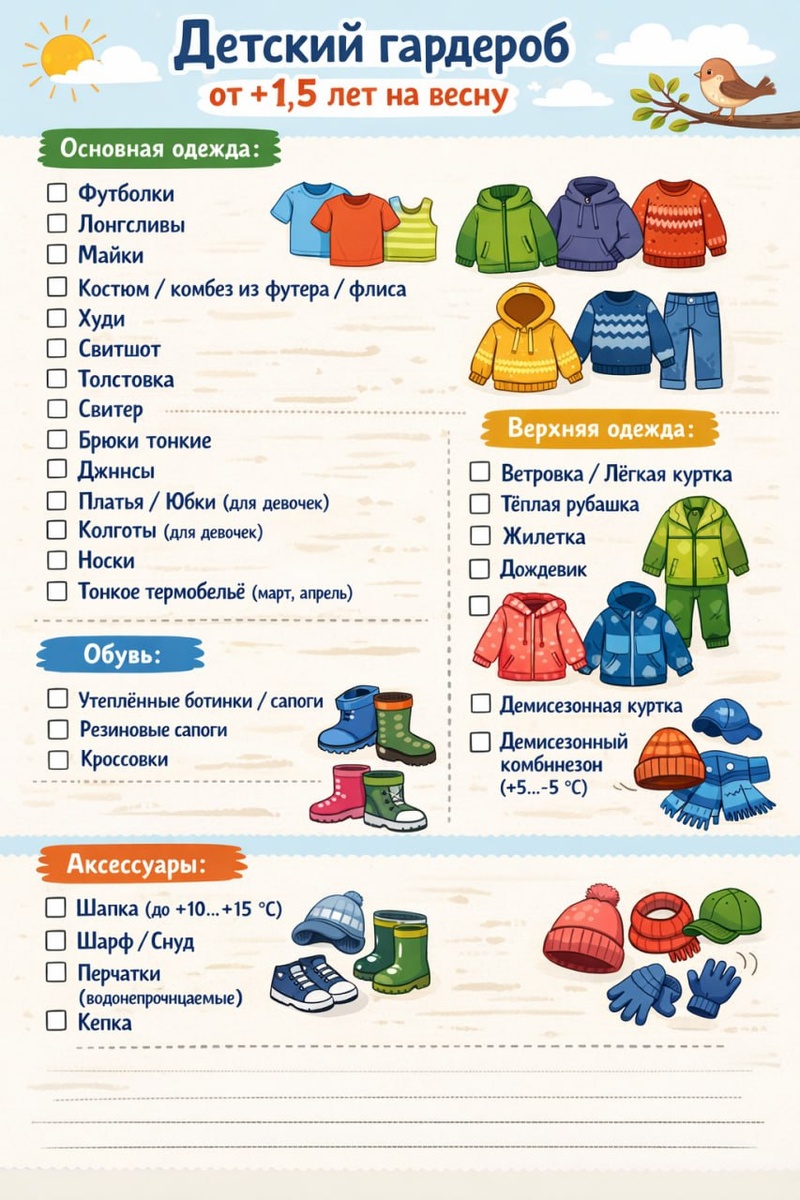 🌿 Поэтому сохраняйте универсальный чек-лист детского гардероба на весну 🧥 Проверьте, из чего малыши уже выросли, а что нужно докупить заранее — без спешки и лишних трат ✅ Сохраняйте, чтобы не потерять 💛 #Дайджест