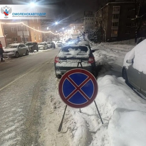 На улицах Смоленска начали устанавливать временные дорожные знаки, запрещающие остановку и стоянку транспорта, для эффективной уборки снега. Об этом сообщили в Смоленскавтодоре. Знаки «остановка запрещена» размещают вдоль обочин ключевых городских магистралей. Эта мера направлена на обеспечение беспрепятственного проезда специализированной техники в условиях продолжающихся снегопадов и очистки города от снежных заносов. В Смоленскавтодоре обратились к автомобилистам с просьбой отнестись с пониманием к временным ограничениям. Владельцев транспортных средств просят не оставлять машины на обочинах дорог. Ранее сообщалось, что коммунальщики круглосуточно работают на улицах Смоленска. Фото: Смоленскавтодор