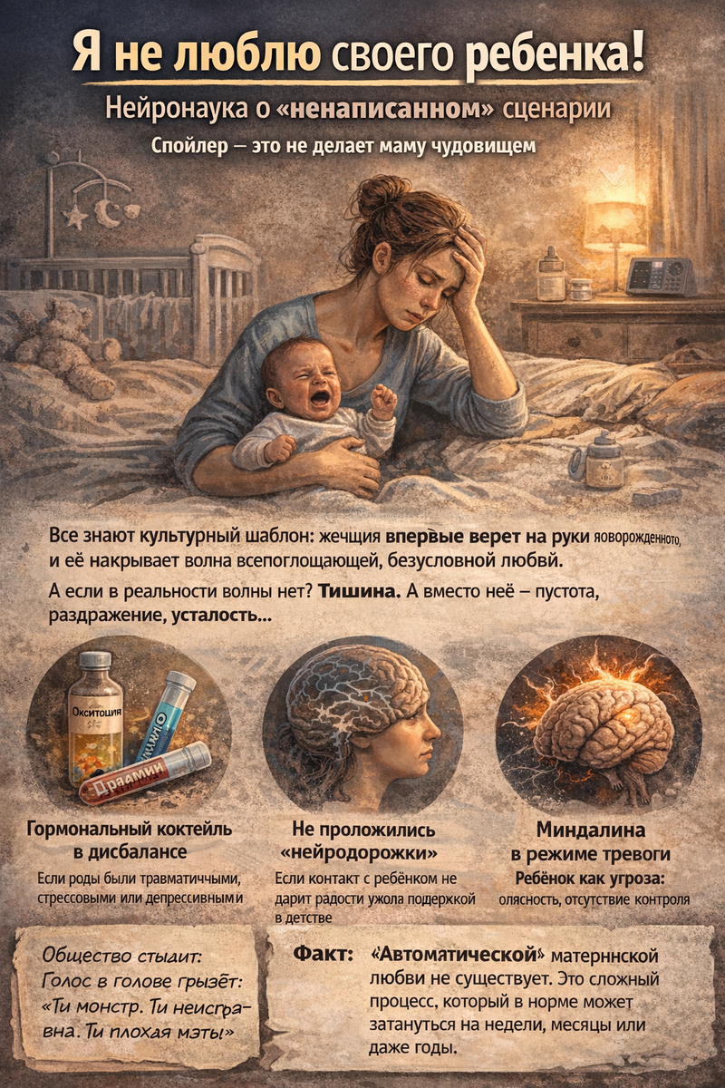 Тихий ужас, о котором молчат. Если вместо обещанной «волны любви» вы чувствуете пустоту или раздражение — это не делает вас чудовищем. Возможно, у вашего мозга просто не загрузилась нужная программа. Объясняю, как это починить.