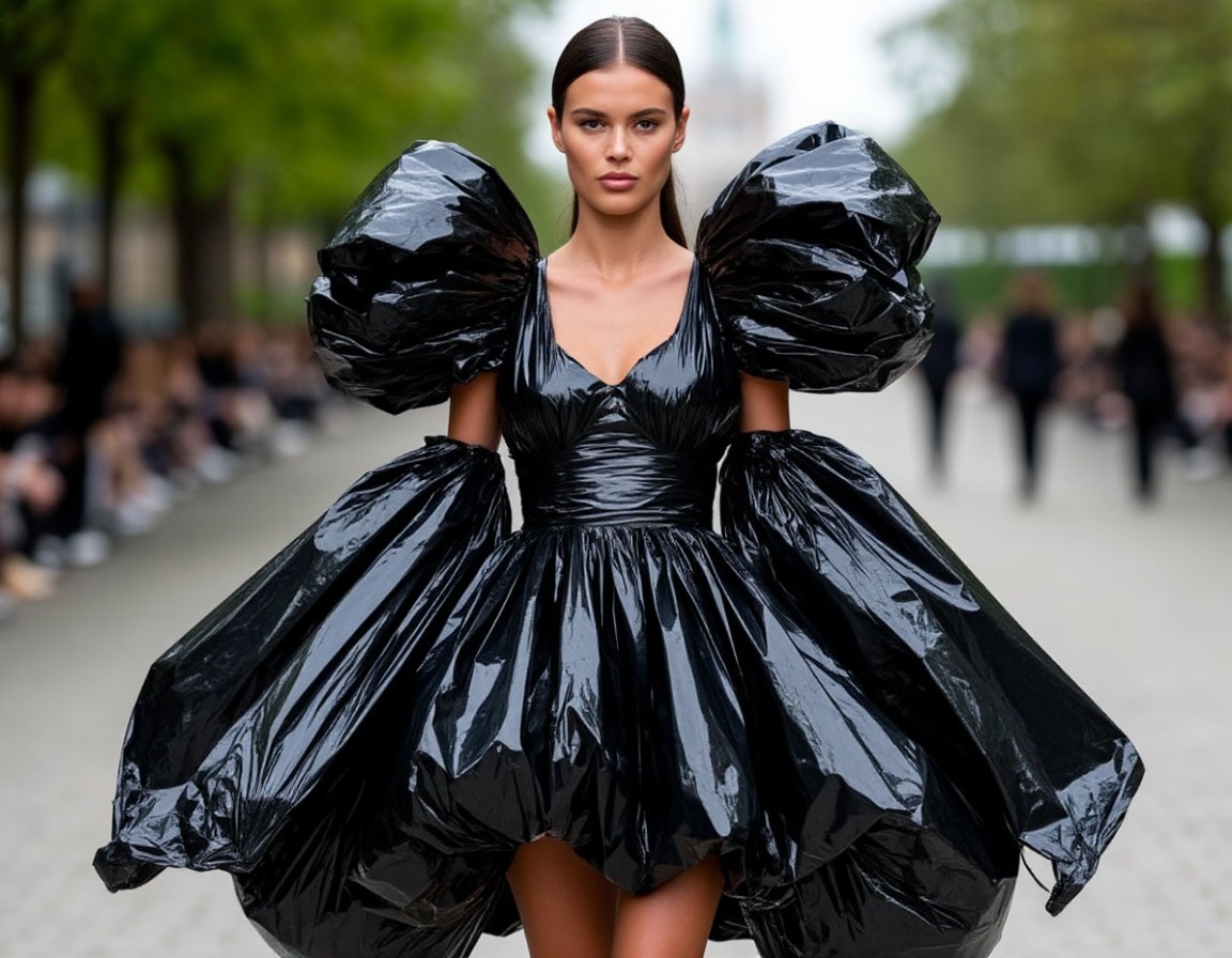 Яркий пример — платье‑пакет от Marine Serre. Оно взорвало интернет не просто из‑за странности, а потому что: