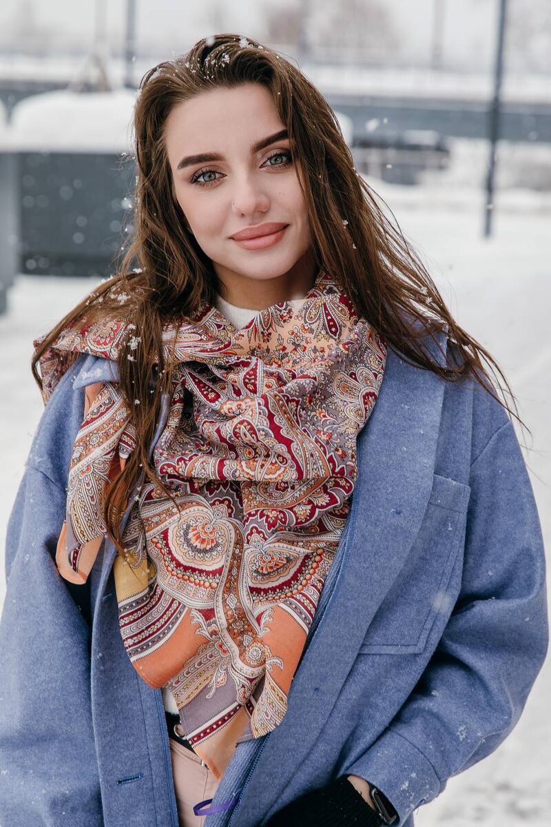 И именно в такие моменты выручает платок. 💫Один платок способен собрать весь образ целиком. Он добавляет цвет, ритм, завершённость — даже если на вас самое простое пальто или пуховик. Не нужно менять одежду, подбирать сложные сочетания или добавлять лишние детали. 🧣Шерстяной платок работает сразу в нескольких направлениях: он согревает, защищает от ветра и одновременно делает образ цельным и аккуратным. Повязанный на шею, накинутый на плечи или надетый на голову — каждый вариант даёт новое настроение, но не требует усилий. Именно в этом его универсальность. Платок не «обязывает», не отвлекает, не требует продумывания. Он делает образ собранным — быстро и без особых усилий. В рабочие будни это особенно ценно: когда хочется выглядеть опрятно и уверенно, не тратя на это лишнюю энергию. ————————— Платок шерстяной с шелковой бахромой "Золотой петушок" Арт. 1943-3; 53 Размер: 125х125 см