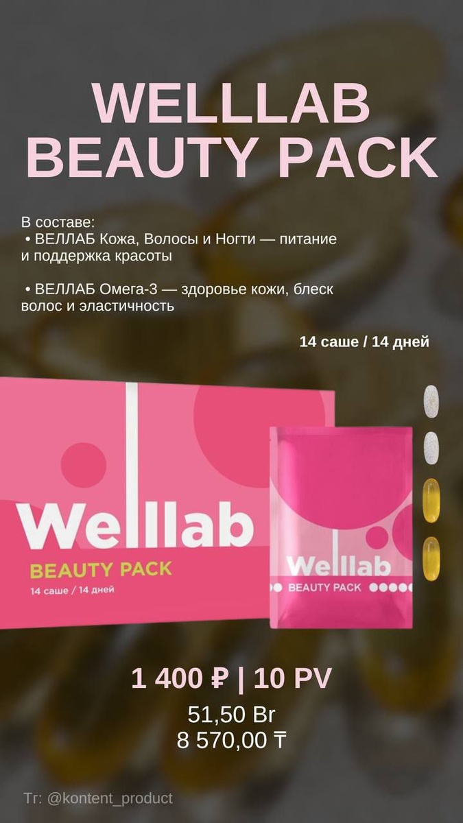 Красота начинается изнутри ✨ Готовый комплекс для поддержки кожи, волос и ногтей — без лишних шагов и сложных схем. Как принимать: ▫ 1 саше 1 раз в день ▫ Курс — 14 дней Состав 1 саше: ▫ 2 таблетки Skin, Hair & Nails ▫ 2 капсулы Omega-3 Цена: 1 400 ₽ | 10 PV Удобно, сбалансировано и идеально для регулярного ухода за собой 💕 ✔️https://greenwayglobal.com/shop/brands/welllab/070752?gw=w3BdWEk3PA