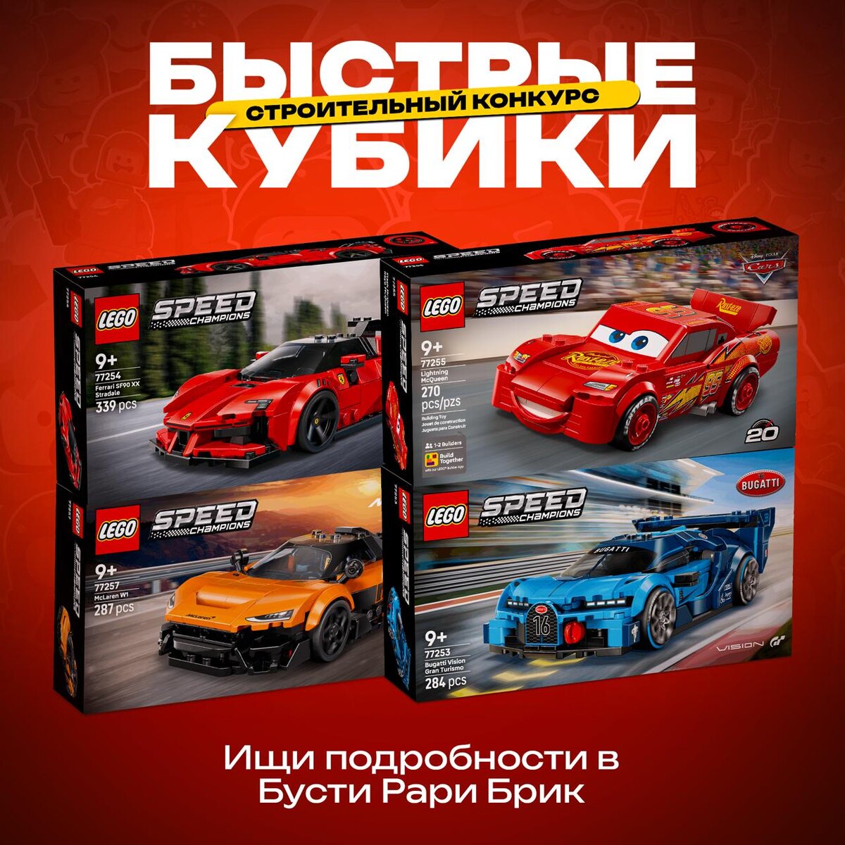 🏁 В этом месяце конкурс посвящён самым стремительным и молниеносным моделям, которые только можно построить из кубиков LEGO. А на кону — 4 топовых набора Speed Champions! Полные правила конкурса и условия участия ищи на нашей страничке в Бусти.