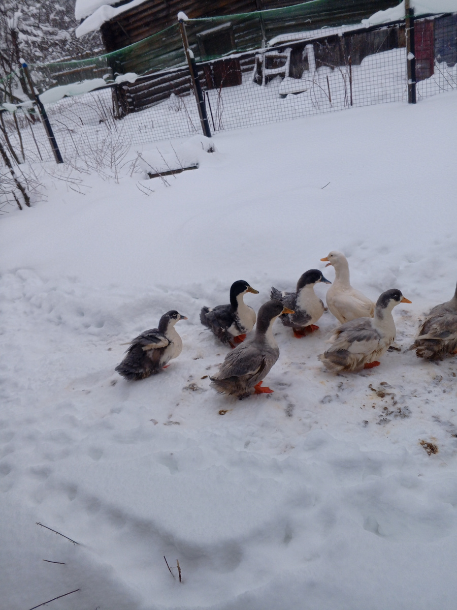А вот уток в более теплое помещение, это двор где содержится другие животные не получается загнать.