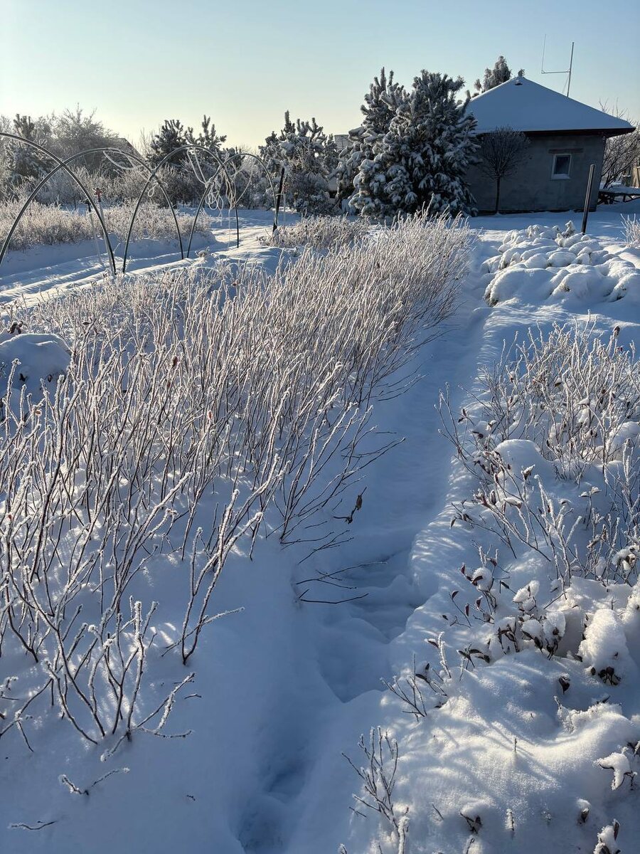 ! ❄️А у нас неожиданно выпал снег! Это редкость в Краснодаре, нас в этом году радует уже второй раз. Конечно, все растает в ближайшие дни, а пока наслаждаемся!☃️ Конечно, сейчас отправки саженцев поставлены на паузу - сложно найти сорт на площадке. Но как только растает - отправим все заказы по акции! Напоминаем, что Акция Рождественская продлится до 14 января включительно! А пока расскажем как сохранять саженцы зимой, если у вас лежит снег. Голубика высокорослая северная (именно этот вид встречается у нас в садах) - растение, требующее обязательной зимы. Некоторые сорта требуют до 2 месяцев постоянного холода иначе ягод не видать. Поэтому зимовка в подвалах, гаражах, верандах и застекленных балконах для них заканчивается горестно. Туда же и неотапливаемые теплицы, но по другой причине - днем тепло, голубика просыпается; ночью - мороз, сокопроводящие каналы в ветках разрывает морозом. 🗻Поэтому идеальной зимовкой будет укрытие снегом. На фото мы поставили 4 саженца на землю, раскопав с