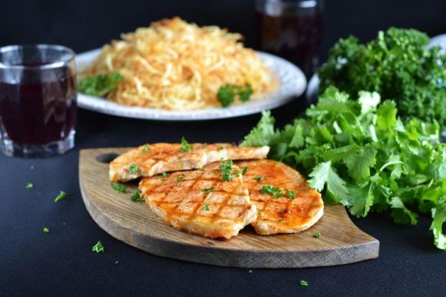 📖 Ингредиенты: · Свинина для стейков (корейка, карбонад) — 800 г · Паприка молотая — 1 ст. л. · Горчица в зернах (молотая) — 0.5 ст. л. · Перец черный свежемолотый — по вкусу · Соль — по вкусу · Масло растительное — 3-4 ст. л. 🧑🍳 Приготовление: 1. Подготовка мяса: Мясо нарежьте на стейки толщиной 1-1.2 см. Обсушите бумажным полотенцем. 2. Маринад: Смешайте все специи — паприку, молотую горчицу, соль и черный перец. Тщательно натрите этой смесью каждый стейк со всех сторон. Оставьте при комнатной температуре на 30 минут. 3. Обжарка: Разогрейте толстую чугунную сковороду на сильном огне с маслом. Выложите стейки и жарьте без крышки по 2-3 минуты с каждой стороны до красивой золотистой корочки. 4. Отдых мяса: Готовые стейки снимите со сковороды, переложите на тарелку и плотно накройте фольгой. Дайте им «отдохнуть» 5-10 минут, чтобы соки равномерно распределились внутри. 5. Подача: Подавайте горячими с любимым гарниром — жареным картофелем или свежими овощами. #стейк #свинина #мясо