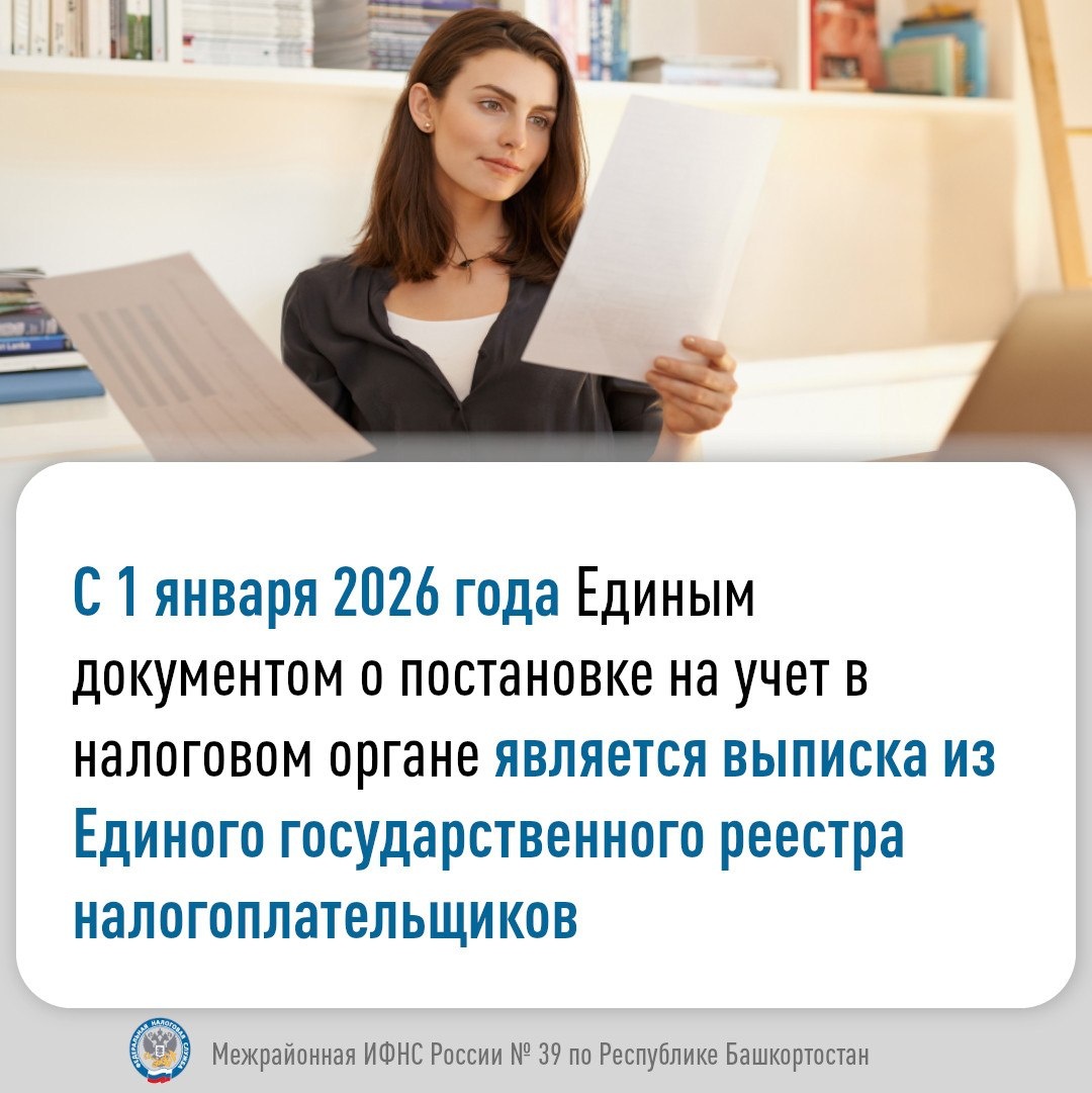 С 1 января 2026 года Единым документом о постановке на учет в налоговом органе является выписка из Единого государственного реестра