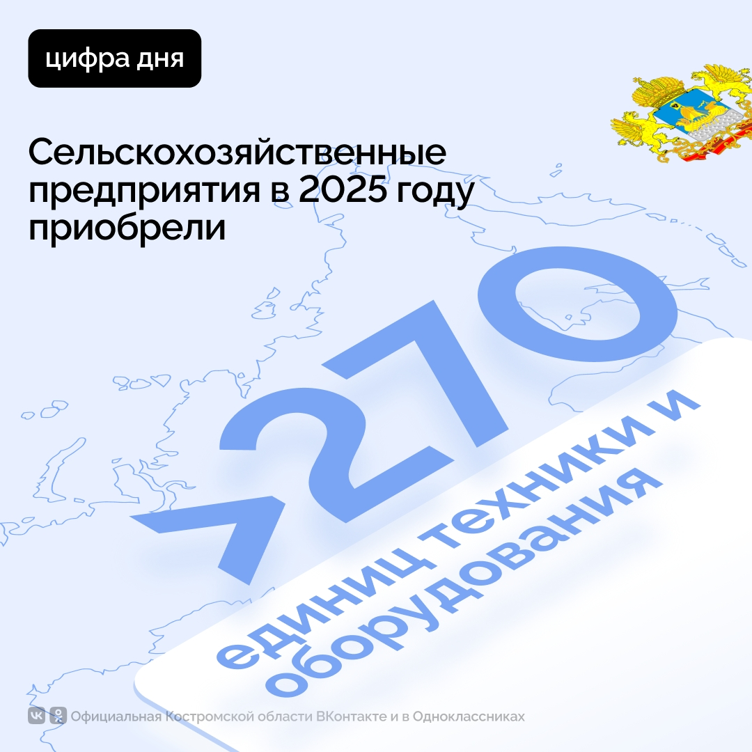В 2025 году предприятиями АПК региона приобретено более 270 единиц сельскохозяйственной техники и оборудования, в том числе 27 тракторов, 5 кормоуборочных комбайнов, 17 единиц почвообрабатывающей техники, 31 единица кормозаготовительной техники, 54 единицы оборудования для животноводческих комплексов. 112 из них были куплены при непосредственной поддержке региона. Размер субсидий по сравнению с 2024 годом увеличился на 140%. Техническая модернизация позволила повысить вдвое производительность труда в агропромышленном комплексе за последние 5 лет. #КостромскаяОбласть #АПК