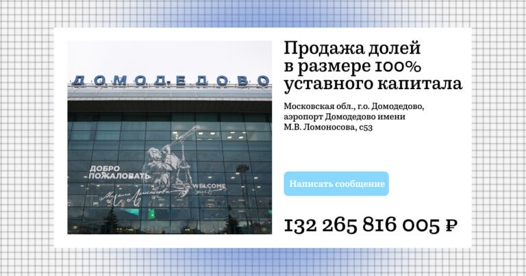 Не секрет, что аэропорт Домодедово официально выставили на продажу. Аукцион стартует уже 20 января, заявки принимают заранее. Победителю достанутся 100% уставного капитала компании «ДМЕ Холдинг». Но по подаче это выглядит так, будто продают не стратегический объект федерального значения, а что-то попроще — шкаф, гараж или «айфон, которым пользовались аккуратно». Потому что Домодедово внезапно всплыло на всем известном сайте объявлений (в том числе и о продаже б/у вещей). Онлайн-платформа подтвердила: объявление настоящее, размещено официальным аккаунтом «Банк ПСБ». Цена — 132,3 млрд рублей. Судя по всему, это один из самых дорогих лотов за всю историю площадки. Разумеется, саму сделку оформлять будут официально: торги пройдут через аукционный дом, а карточка на сайте объявлений — это скорее витрина. Но интернету этого оказалось достаточно: в соцсетях уже уверены, что главный претендент на Домодедово — Татьяна Ким. Телеграм-каналы даже уже рисуют концепции аэропорта «WB Перелеты»: фиоле
