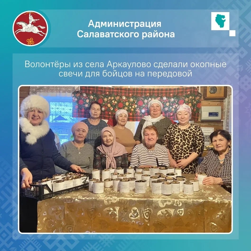 операции, обеспечивая надежный тыл. В новогодние праздники волонтёры из села Аркаулово Салаватского района заливали окопные свечи для наших бойцов на передовой. В предпринимательском сообществе Татышлинского района по прямому запросу бойца с позывным Ермак организовали покупку автомобиля, запасных частей для его восстановления и отправки в зону СВО. В Бурзянском районе жители села Кулганино развернули работу по плетению маскировочных сетей. Активное участие принимает молодежь. Жительницы села Новоельдяково Бураевского района начали вязать шерстяные носки и варежки для бойцов СВО. В районном доме культуры в Большеустьикинском провели благотворительный концерт. Собранные средства передали на нужды спецоперации. Жители Белокатайского района доставили бойцам СВО 40-й гуманитарный конвой. Поездка стала результатом сотрудничества с «Боевым братством» города Бакал Челябинской области. 💚 ЦУР Башкортостана