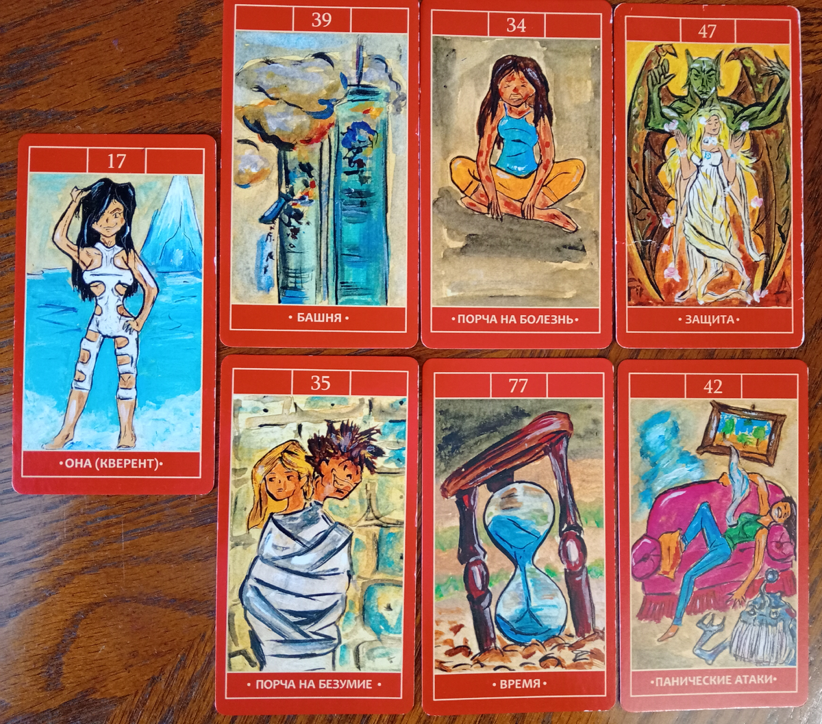 Какой негатив применяла против Вас враг женщина? Вышли карты: "Башня", "Порча на болезнь" и карта, которая относится к Вам: карта "Защита". Как её действия повлияли на Вашу жизнь? "Порча на болезнь". Ваш враг длительное время воздействовала на Вашу энергетику. Эта была порча "Подклад" - эта порча действует не одну неделю, разрушала Ваше здоровье. У Вас были проблемы с самочувствием, ухудшилось здоровье, Вы не могли понять, почему ничего не помогает и постоянно присутствовали болезненные ощущения. О том, что Вы стали жертвой порчи, Вы могли подумать только в самый последний момент. Возможно, лишь потом Вы осматривали свой дом и все его закоулки в поисках чужеродных предметов. В результате поиска Вы могли найти неизвестные Вам вещи: иглы, травы, клочья волос, землю, зерно, измельчённое стекло, нитки или всё вместе взятое, именно такими вещами делают Подклады. Порчу на здоровье мог провести Маг, которому делала заказ на Ваш враг, если же она не вхожа в Ваш дом. Тогда Маг мог провести обря