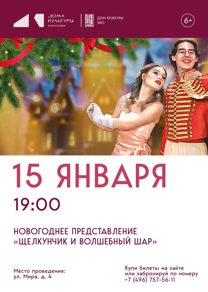 📅 15 января в 19:00 📍 ДК ЗИО (Г.о. Подольск, ул. Мира, 4) 💰 Стоимость билета: 500 рублей 👶 Возрастное ограничение: 6+ ✨ Узнайте историю волшебного шара, разбившегося в рождественскую ночь 🎄 Станьте свидетелями битвы Щелкунчика с коварной Мышильдой 🎵 Насладитесь музыкой композитора Василия Тонковидова 💫 Погрузитесь в мир уникальных костюмов и авторского оформления В спектакле участвуют: • НК Театр-студия «Артель» • ОК Театр «Подмастерья» • ОК Спортивно-танцевальный клуб «Идеал» • Цирковая студия «Арлекин» • Студия эстрадного вокала «Арт-коктейль» • Танцевальная студия "ЮЛИОН" • Специалисты творческого отдела ДК ЗИО 🎟️ Билеты уже в продаже по ссылке: https://clck.ru/3QZ7m6 Приобрести билеты также можно в кассе ДК ЗИО перед началом мероприятия. #ДКЗИО #Щелкунчик #Спектакль #Подольск #Сказка #Театр #Дети #Рождество