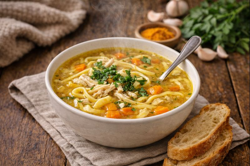 А вот тарелка густого куриного супа — спасает почти сразу. Я варю его каждый раз, когда продрогла на улице. Простой, ароматный, согревающий — именно то, что нужно в холодные дни. Секрет не только в курице. Здесь важно всё: Когда готовишь в хорошей кастрюле и сковороде, суп получается чище, ароматнее и насыщеннее — без лишнего привкуса. Курицу заливаем холодной водой, доводим до кипения, снимаем пену и варим 35–40 минут на слабом огне. 💡 Я варю бульон в чугунной кастрюле Oberhof — она долго держит тепло, и бульон получается особенно насыщенным.