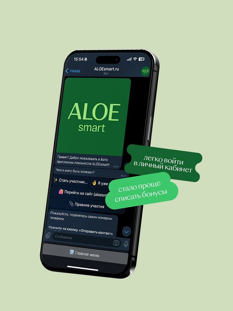 🔥💚 Чем поможет бот? — узнать кол-во бонусов на карте лояльности — войти в личный кабинет на сайте ⬇️⬇️⬇️ https://t.me/ALOEsmart_Max_Bot *бонусы начисляются абсолютно всем участникам программы лояльности в течении суток*