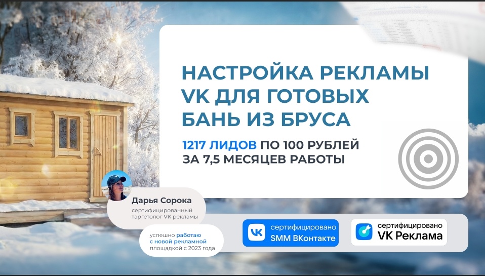 Данный кейс о том, как я создала поток заявок на готовые бани из бруса с нуля (с пустой группы) до базы в 1217 человек и набрала подписчиков в группу до 1200 человек.