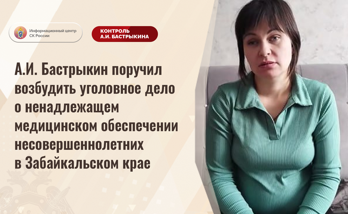 А.И. Бастрыкин поручил возбудить уголовное дело о ненадлежащем медицинском обеспечении несовершеннолетних в Забайкальском крае