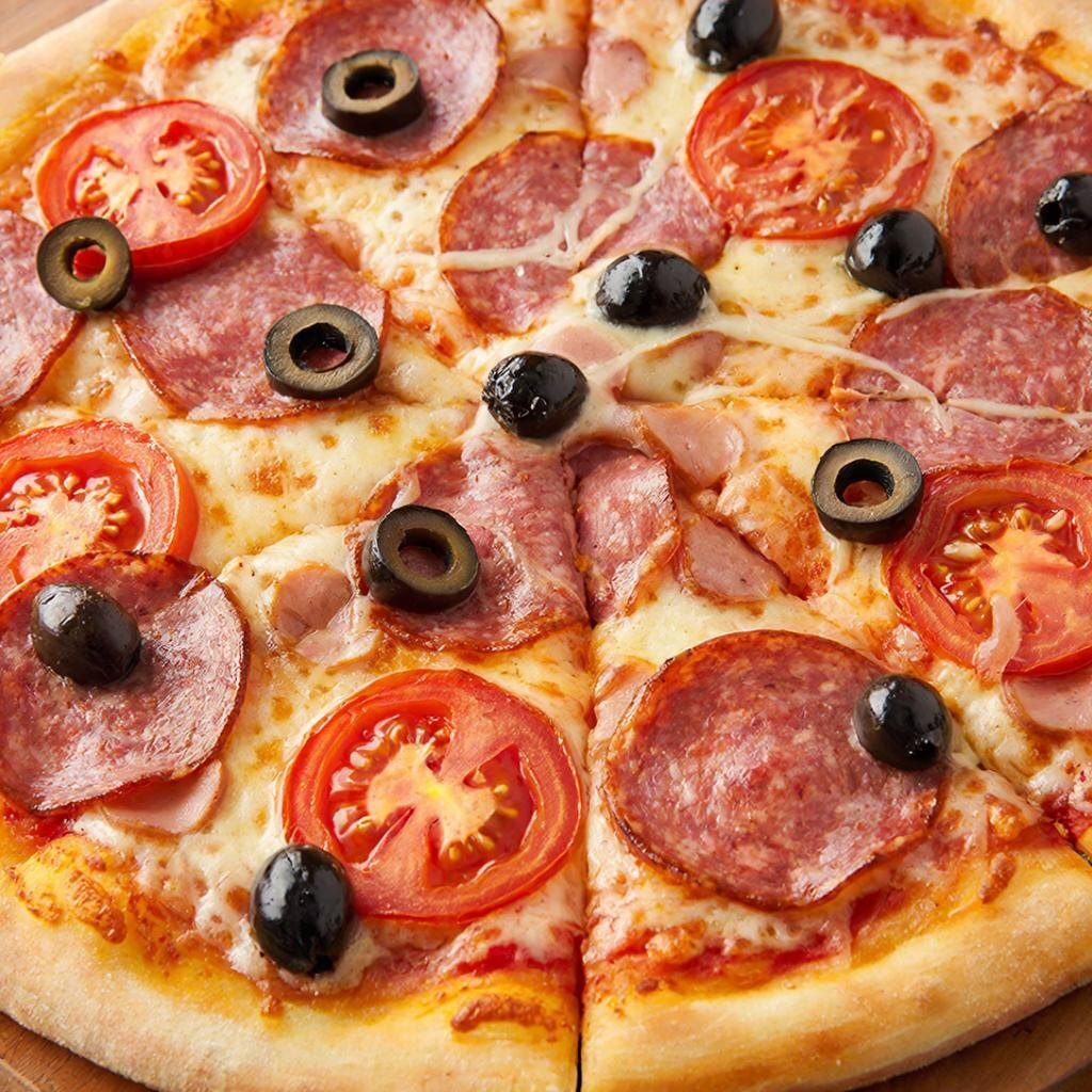 Маслины режем кружочками и выкладываем сверху пиццы.