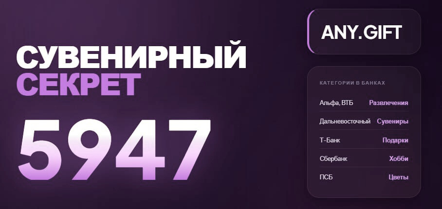 В понедельник Альфа выкатил предложение по супербарабану кешбэка на спорт и развлечения. И поначалу может показаться, что получив 30% кешбэка, его никак нельзя с толком пристроить. Но на самом деле категория развлечения или МСС 5947 отлично бонусируется с сервисом any.gift и другими (Если что - за рекламу никто мне как обычно не заносил) При этом в разных банках 5947 выглядит по-разному: В каких сервисах можно затоварить этот МСС: Важно: при оплате автоматом предлагают оплату по QR/СБП — нажимайте «Отменить», чтобы появилась форма для ввода данных карты. Это те сервисы, которые я сама пробовала, поэтому могу отвечать только за них. Если вы где-то еще покупаете сертификаты, делитесь. Чтобы проверить, по какому МСС проходят операции можно попробовать оплатить картой с нулевым балансом. Увидели, по какому коду бьется - оплачиваете далее с нужной карты.