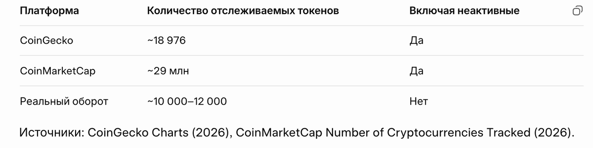 Криптовалюты стали частью повседневных обсуждений, но многие аспекты их существования всё ещё вызывают удивление. В этой статье собраны пять фактов, основанных на аналитике и исследованиях за 2025–2026 годы. Перед тем как углубиться, напомним о рисках: криптоактивы подвержены резким колебаниям цен, высоким комиссиям в блокчейн-сетях (особенно в периоды нагрузки), юридическим ограничениям (включая запрет на использование как средства платежа в некоторых странах) и возможности полной потери доступа к средствам из-за утери приватных ключей. По оценкам CoinGecko на начало 2026 года, активно отслеживается около 18 976 криптовалют, в то время как CoinMarketCap фиксирует свыше 29 миллионов созданных токенов за всю историю, включая неактивные и тестовые. Однако реально торгуемых с заметным оборотом — всего 10 000–12 000. Аналитики Chainalysis и Glassnode оценивают, что 2,3–4 миллиона BTC (11–19% от максимального лимита в 21 миллион) недоступны из-за утерянных ключей, ошибок или смерти владельц