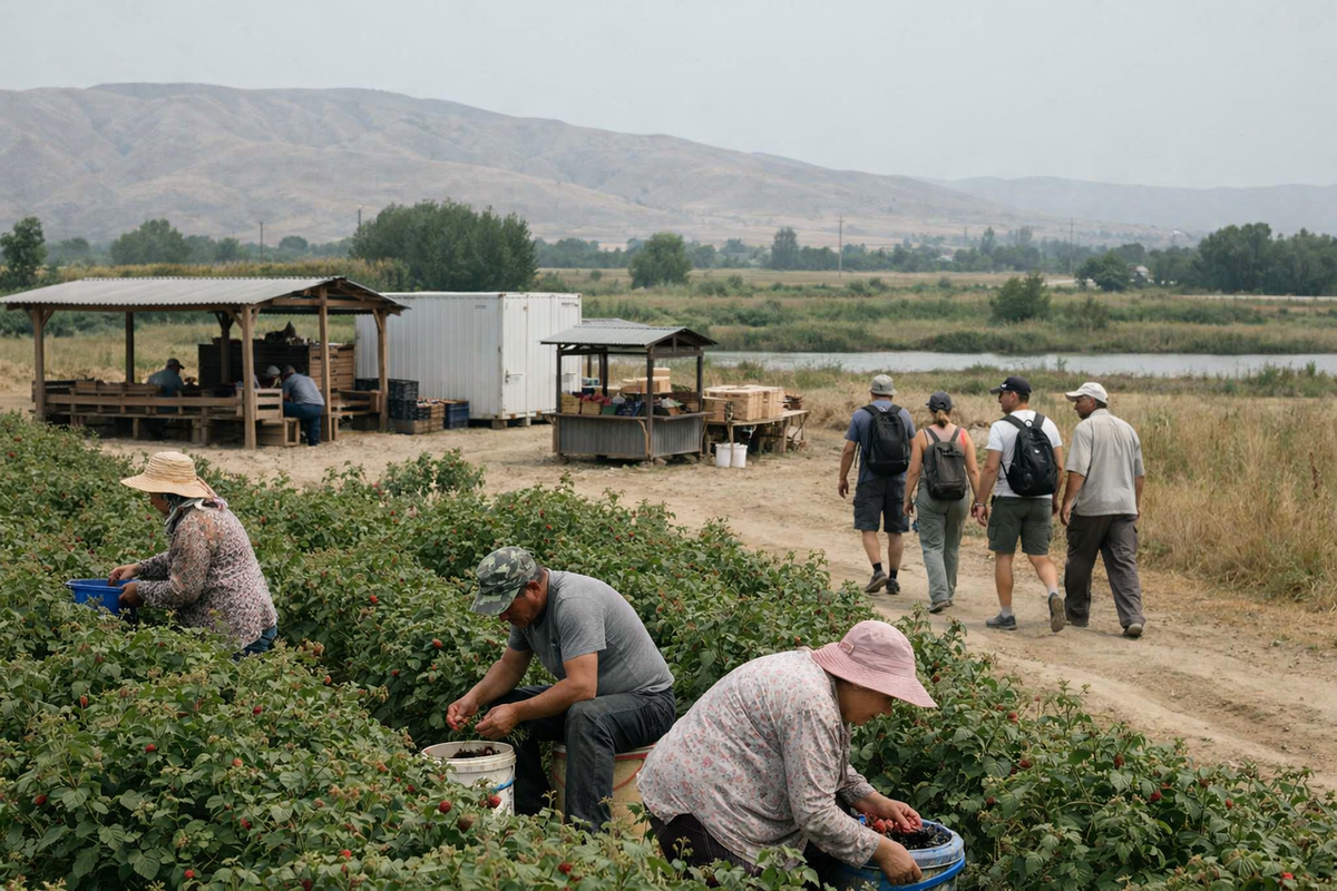 Центральным элементом проекта становится агротуристический кластер «Водил», специализирующийся на выращивании малины. До настоящего времени эта территория функционировала в логике классического сельского хозяйства: сезонная занятость, ориентация на оптовый рынок, высокая зависимость от перекупщиков и колебаний цен. Средняя урожайность малины в регионе составляет 8–12 тонн с гектара. При сезонных оптовых ценах валовая выручка с одного гектара может достигать 15–20 тысяч долларов, однако значительная часть этой суммы теряется из-за логистических издержек, отсутствия хранения и переработки, а также из-за ценового давления в пик сезона.