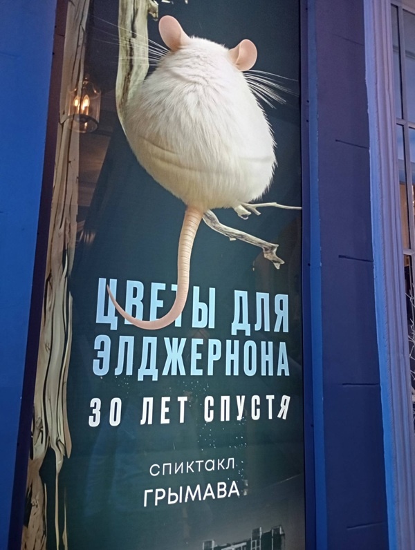 Знаете за что я люблю театр Модерн? За оригинальность и стильность. Приходишь в театр, а там служители одеты в наряды, намекающие на спектакль (прикольные рожки у дам, когда шел "Скотный двор", помните?), куча классного мерча, зрители, старающиеся соблюдать дресс-код, жутко креативные афиши и рекламные материалы (на мышь внимание обратили?). Но самое главное, конечно, - спектакли Юрия Грымова. На моей памяти это единственные постановки, на которых зрители сидят, как кролики перед удавом: не двигаясь, не шевелясь, устремив взгляд на сцену. Ибо Юрий Вячеславович умеет удивлять. Не стала исключением и недавняя премьера "Цветы для Элджернона. 30 лет спустя". Кстати, вы в курсе, что 12 лет назад Грымов ставил в РАМТе спектакль по книге Киза? "Цветы для Элджернона. 30 лет спустя" не является прямым продолжением истории про слабоумного Чарли Гордона, который обрел высокий IQ в ходе научного эксперимента, а затем потерял его. Это, скорее, размышление создателей спектакля на тему "Что мы есть в