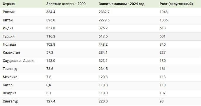 Цифры кричат громче слов! 🔊 С 2000 года два гиганта — Россия и Китай — накопили ГОРА золота, оставив конкурентов в пыли 🏔️💎 📊 ТОП-лидеры: ➖ 🇷🇺 Россия: +1 948 тонн! 🚀 ➖ 🇨🇳 Китай: +1 885 тонн! 🐉 Но дело не просто в тоннах! 🤔 Вместе они забрали БОЛЕЕ ПОЛОВИНЫ 🥇 всего золота, купленного центробанками мира за последние 5 лет! 🤯 ❓ ЗАЧЕМ? Ответ — стратегическая НЕЗАВИСИМОСТЬ! 🛡️ ▪️ 🏦 Снижение роли доллара. ▪️ 🛡️ Защита от санкций и кризисов. ▪️ 🤝 Даже специальные сделки в обход США! Россия и Китай не просто копят. Они строят новый фундамент 🏗️, где золото — ключ к суверенитету Кто пошел по их стопам? Смотрите дальше! 👇 #золото #экономика #геополитика #Россия #Китай #доллар #финансы #новости