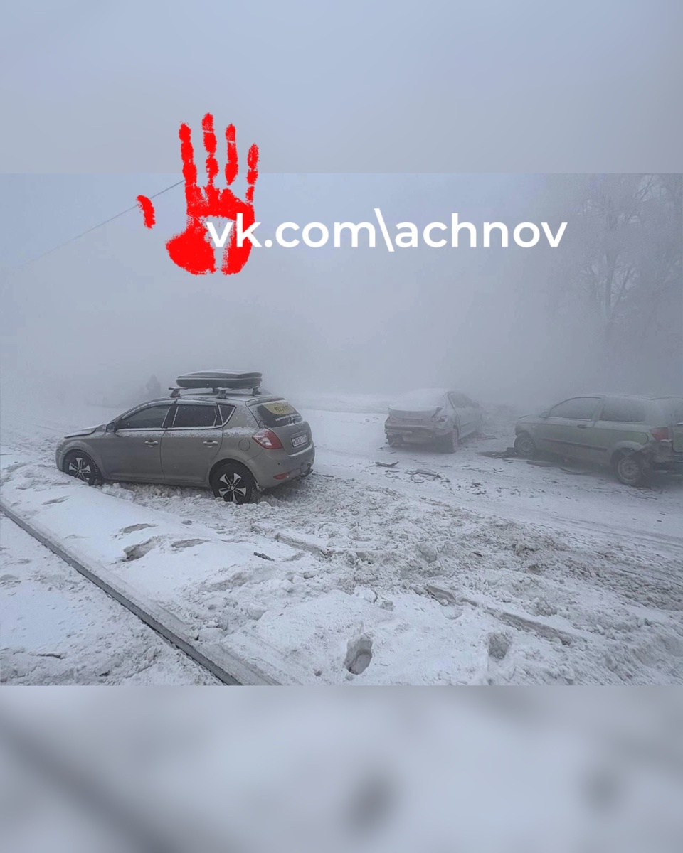 Это фото последствий удара сразу пяти машин. Сообщается, что водитель Peugeot 206 ехал на высокой скорости в туман. Далее он врезалася в Lada Granta, а потом — еще в две машины: Hyundai Mighty и Hyundai Getz. А в конце с Peugeot столкнулся Kia Ceed. В результате ДТП пострадала 49-летняя женщина, которая управляла Hyundai Getz. Предположительно, она ударилась об руль
