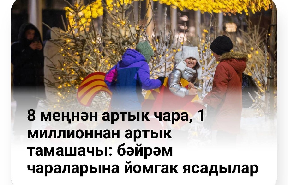 Татарстан Министрлар Кабинетында бәйрәм чараларына йомгак ясадылар. Яңа елны ничек каршы алдык? https://vatantat.ru/news/8-mennan-artyk-cara-1-millionnan-artyk-tamasacy-bairam-caralaryna-iomgak-iasadylar-111228