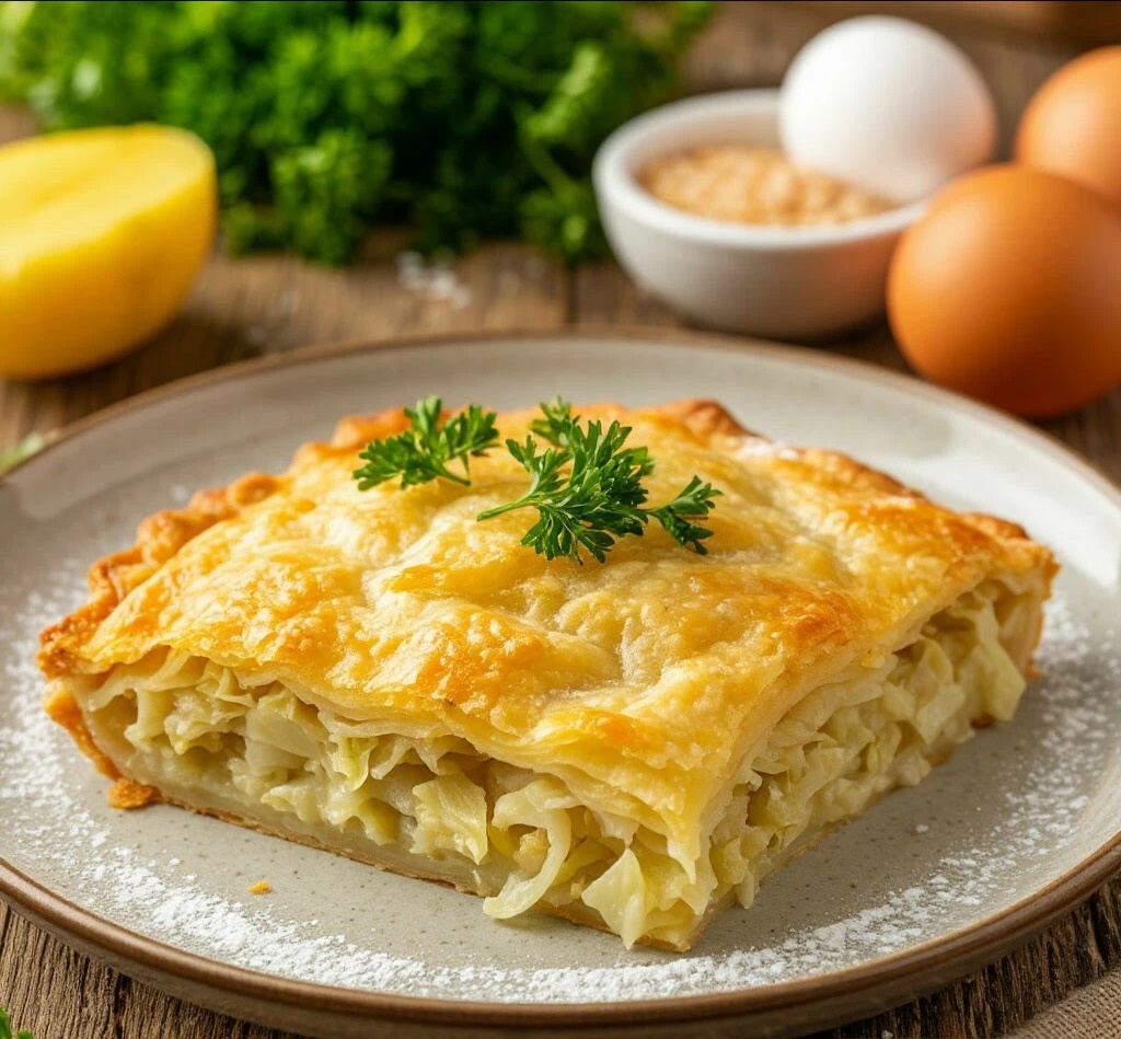 ПОЧЕМУ ЭТО ШЕДЕВР? 🎨 Это пирог для ленивых гурманов!Внутри он получается сочным, нежным, с хрустящей капустой, а сверху — румяной, аппетитной корочкой. Он не сухой, благодаря кефиру. Идеален на завтрак, ужин, в ланч-бокс или как сытная закуска. А главное — его стоимость просто смешная! 😻